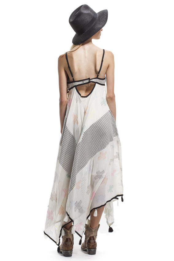 Desainnya yang tanpa menggunakan lengan serta punggung yang terbuka membuat kamu terlihat menawan ketika menggunakannya. Yang membuat Maxi Dress ini menjadi terlihat elegan adalah dari motif-motif pada bagian kainnya dan bawahnya yang ada tassel hiasan.